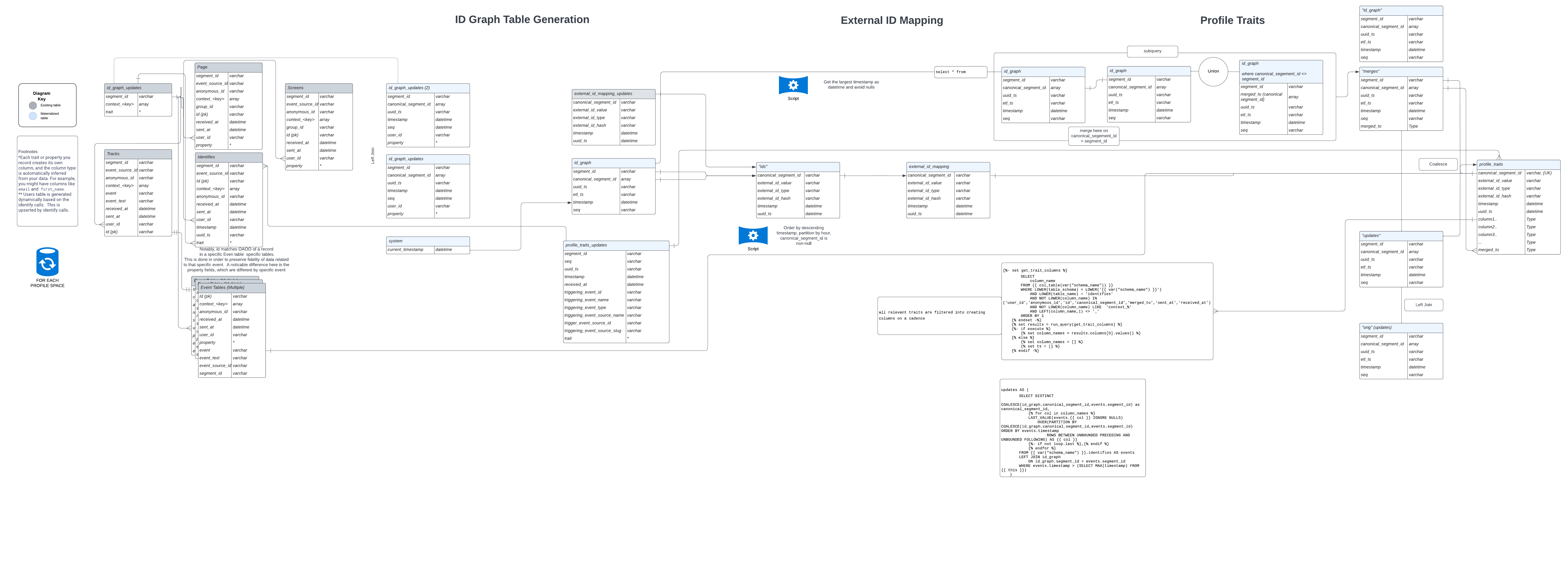 Profile raw tables contain records of changes to your Segment profiles and Identity Graph over time.